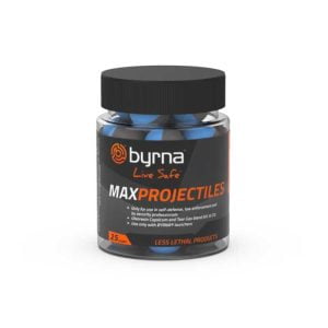 – Byrna MAX Projectiles are the pinnacle of non-lethal defence harnessing Byrna’s most potent proprietary pepper and tear gas blend.