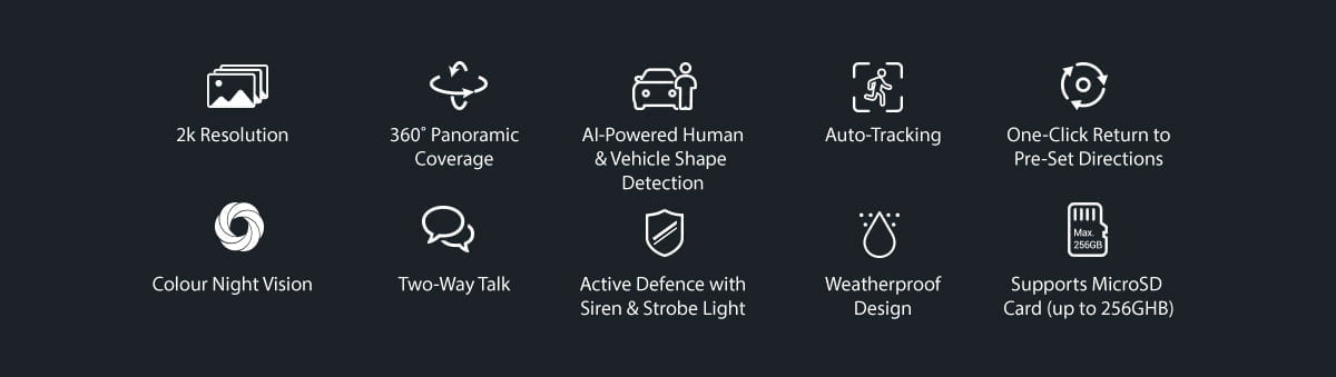 The C8W Pro 2K elevates the convenience provided by a smart security camera. Thanks to on-device AI, it is able to differentiate people and vehicles from other moving objects, and can automatically lock on and follow human movements to record important moments. Despite complex tracking capability, it provides easy control to auto-resume its pre-set viewing angle through one click. Use it to watch over your home entrance or backyard, for 24/7 all-round protection with 2K clarity.