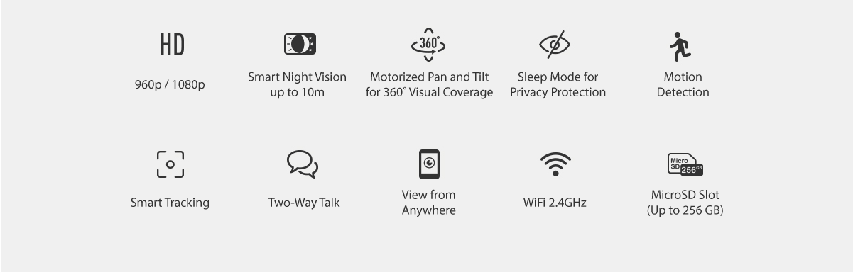 Watch over your entire space easily with the TY1 Camera’s 360-degree field-of-view and its smart tracking feature. It’s got you covered – all day & all night.