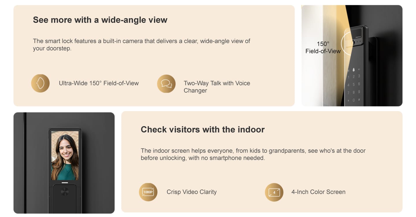 - AI-powered smart door lock with 3D facial recognition (fast, hands-free unlocking)