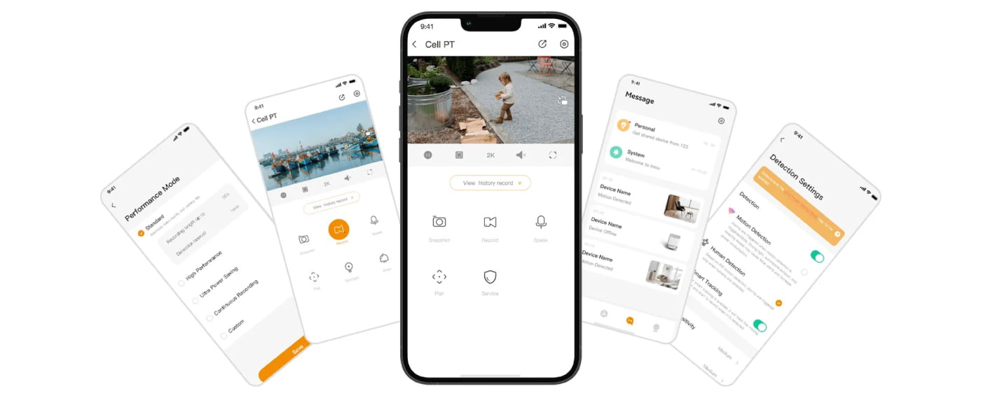 Cell PT supports 0°-355° pan and 0°-90° tilt to fully protect your home with a 360-degree view.